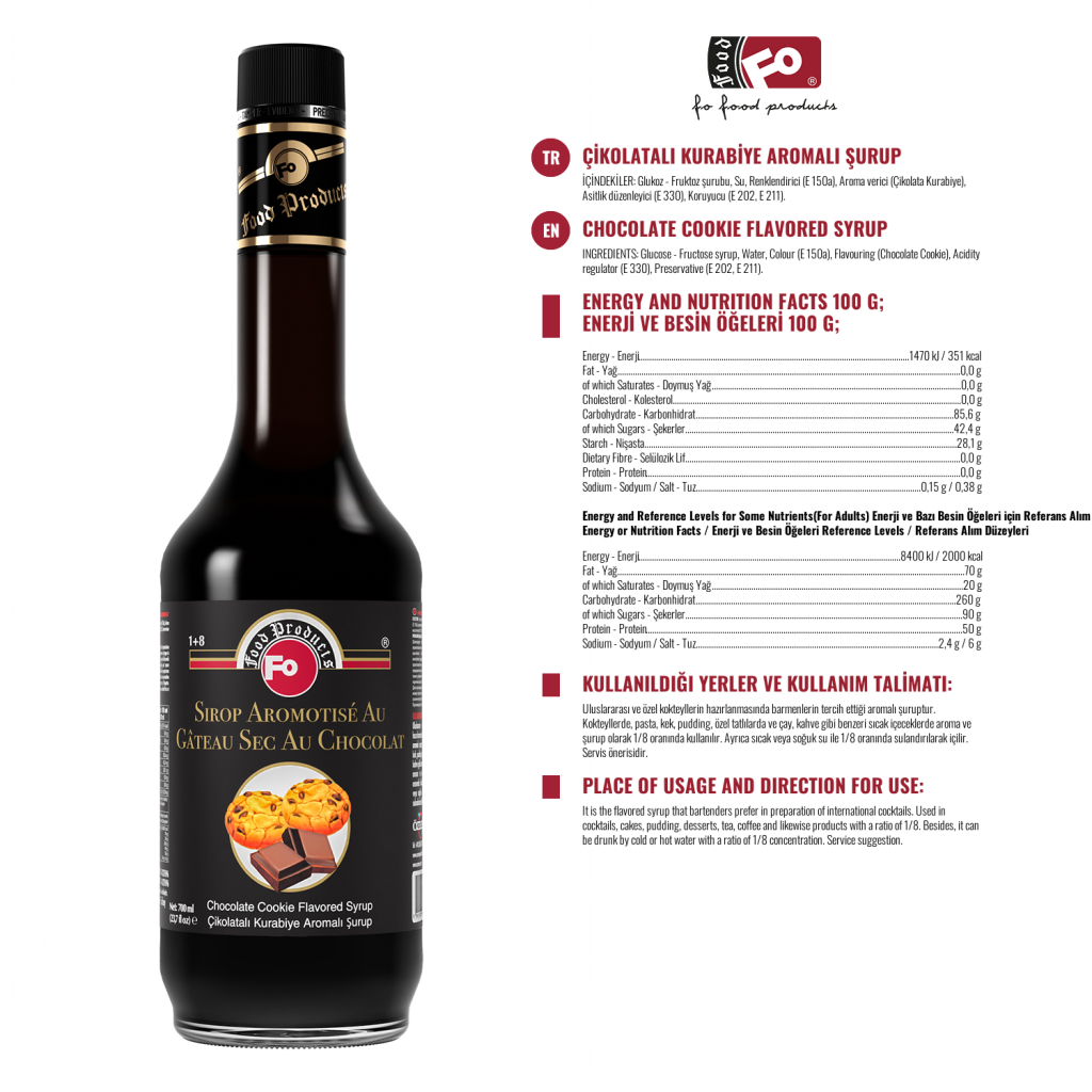 Place of Usage: They may be used in desired amounts pratically in alcohol and non-alcohol cocktails, creams, whipped creams, cakes, eatable ices and ice slush. It is used as 1.5-2 cl in cold and hot drinks such as latte, Cappuccino, fitre coffee, ice latte, frappe, milkshake, smoothie, frozen, cocktails, hot and cold teas. It can also be drunk with hot or cold water / milk, prepared in a ratio of 1+8. It is added to all kinds of desserts to the desired extent in order to give flavor to pastry products such as cakes, cookies, cakes.