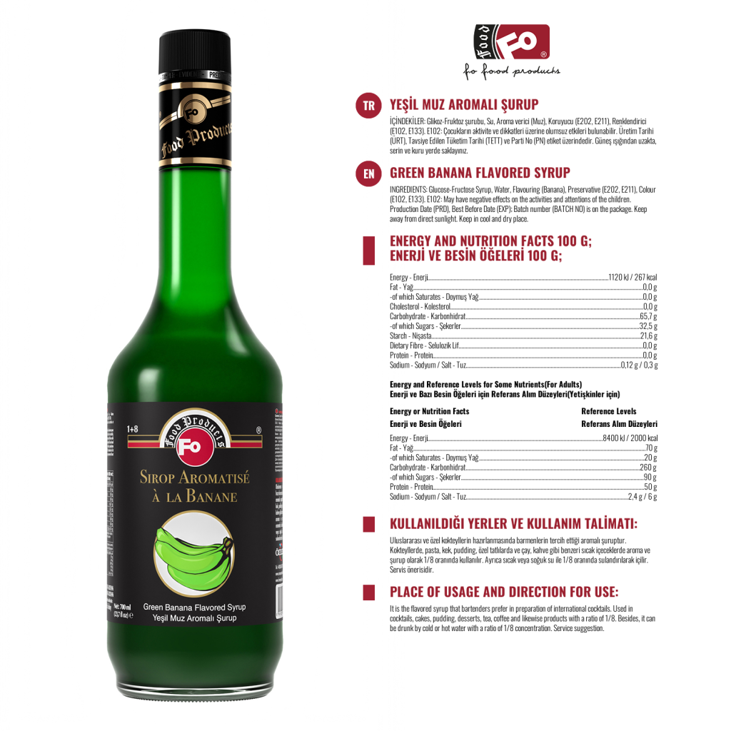 Product Features: It does not include artificial sweeteners. It gives an aesthetic appearance to your showcases with its attractive and healthy packaging. It is preferable thanks to its intensity, aroma and colour. Although the dry matter content is 10% higher than other syrups, it is 30% less sweet. If the lid is kept closed after opening; until the expiry date, there is no decrease in aroma, color and density.