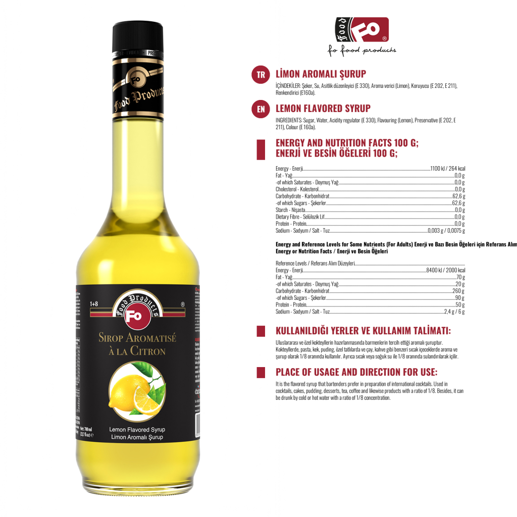 Product Features: It does not contain artificial sweeteners. It gives an aesthetic appearance to your showcases with its attractive and healthy packaging. It is preferred in terms of aroma, color and density. Although its dry matter ratio is 10% more than other syrups, it is 30% less sweet. If it is kept with the lid closed after opening; there will be no decrease in aroma, color and density until the expiration date.