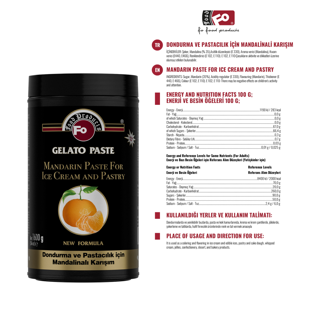 Mandarin Paste for Ice Cream and Pastry 1600g