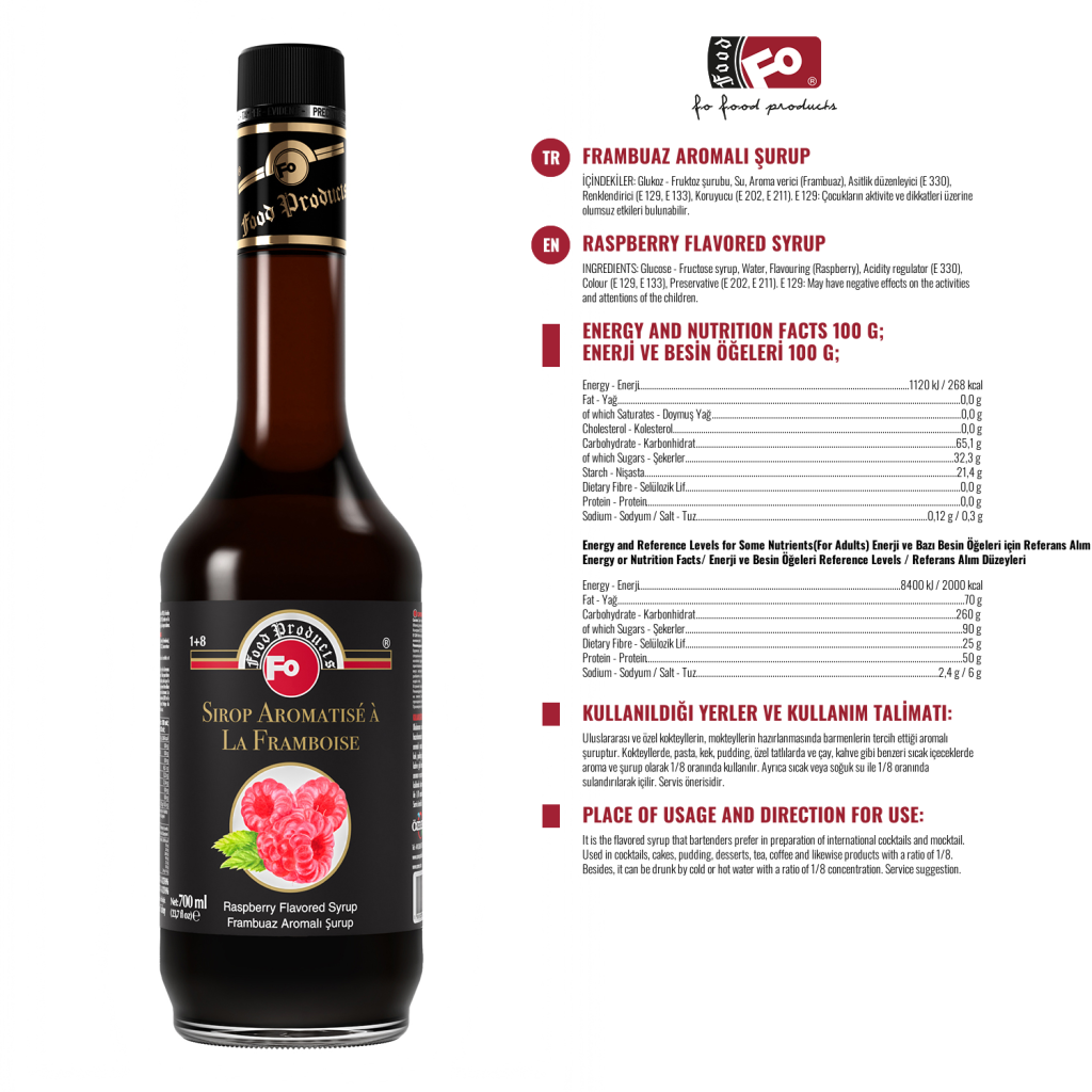 Especificación del Producto: No contiene edulcorante artificial. Da un aspecto estético a las vitrinas con su impactante y embalaje saludable. Se prefiere en términos de aroma, color y densidad. Aunque el grado Brix es un 10% superior al de otros jarabes de cóctel, es un 30% menos dulce. Incluso si se abre la tapa de la botella, el sabor, el color y la densidad no disminuyen hasta la fecha de caducidad después de cerrar la tapa de la botella.