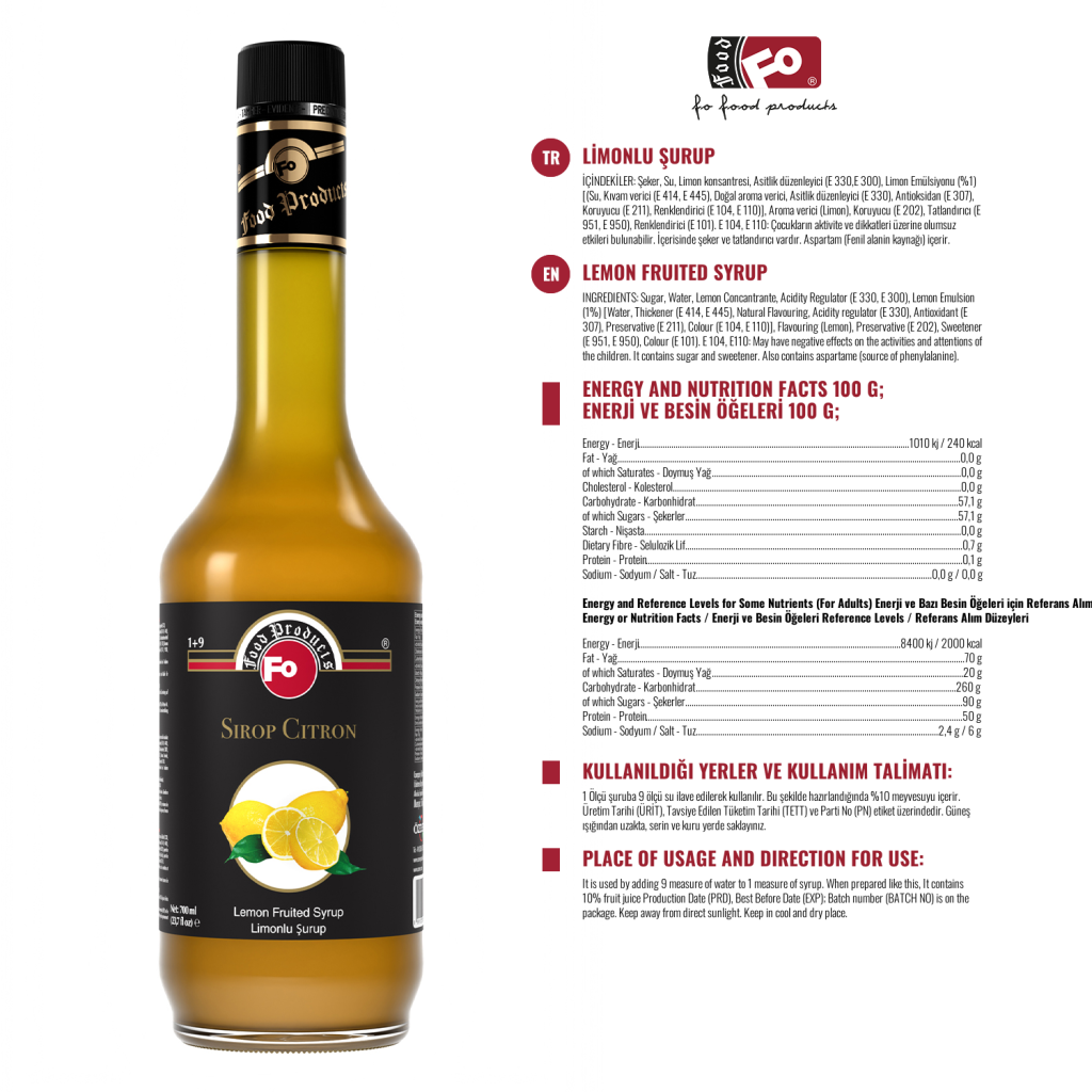 Lugar de uso: Se utiliza en bares, cafeterías, restaurantes, hoteles, casas para la preparación de bebidas alcohólicas y no alcohólicas. Se utiliza en masas de repostería y pasteles, helados, nata y nata montada para dar al producto un sabor y color a limón.