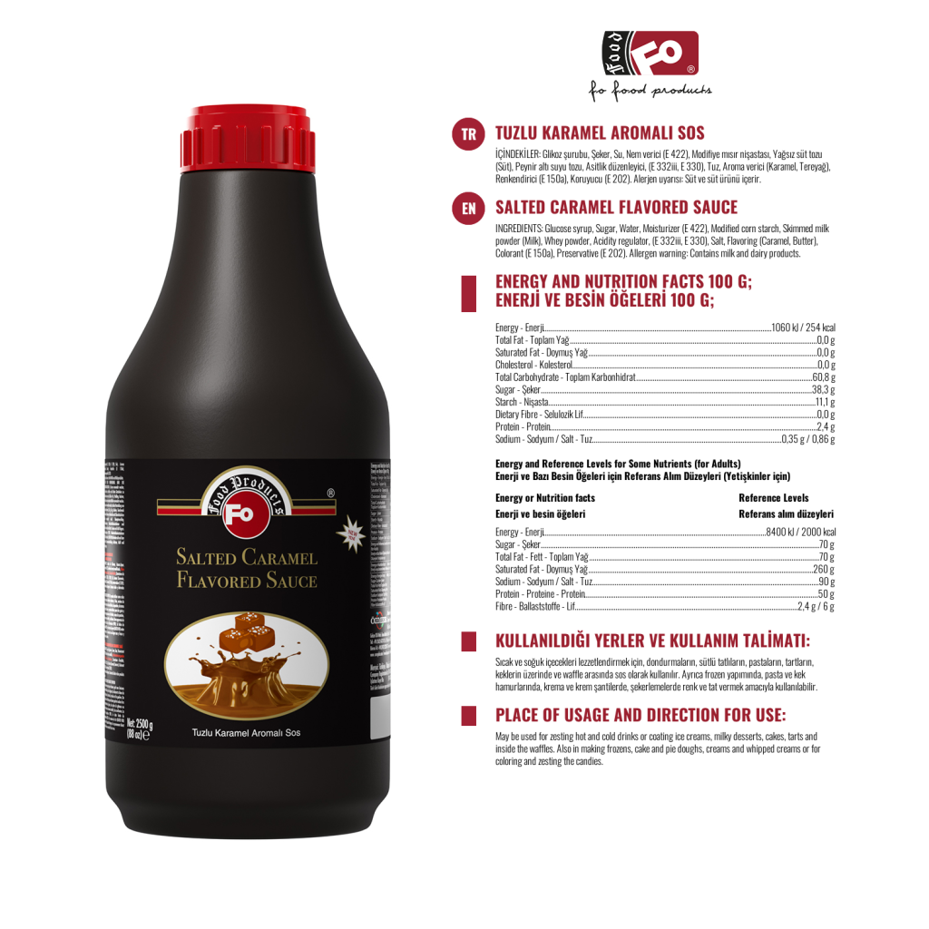 Áreas de uso: Se usa como salsa en helados, postres de leche, pasteles, Decantadores, tartas y entre gofres para dar sabor a bebidas frías y calientes. También se puede utilizar en la producción congelada, masas de pastelería y pasteles, sitios de construcción de nata y nata, confitería para dar color y sabor.