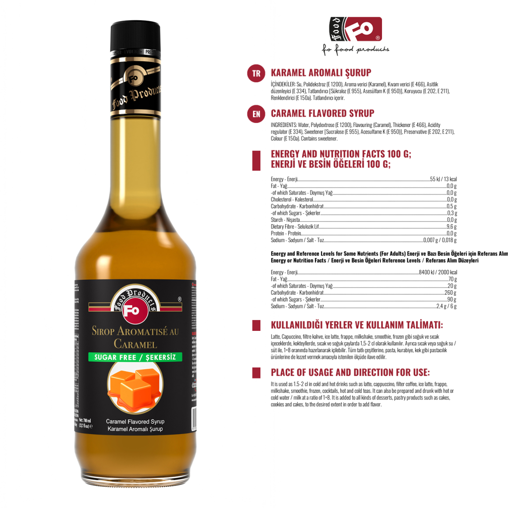 Áreas de uso y Método de uso: Se utiliza como 1,5-2 cl en bebidas frías y calientes como Café con leche, Capuchino, Café de filtro, Café con leche helado, Frappe, Batido, Batido, Congelado, cócteles, tés fríos y calientes. También se puede beber con agua / leche fría o caliente, preparada en una proporción de 1+8. Se agrega a todo tipo de postres en la medida deseada con el fin de dar sabor a productos de repostería como tartas, galletas, pasteles.