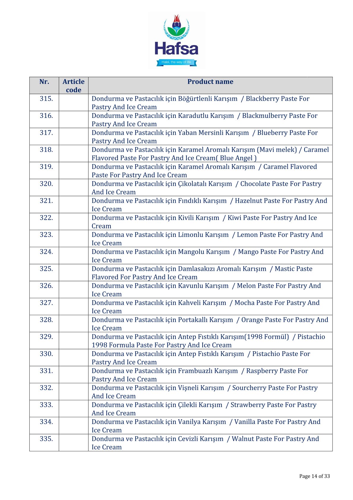 Alanında uzman ekibimizle, son teknoloji ile donatılmış üç laboratuarımızda, birçok araştırma ve testten sonra pastacılık sektörüne yeni açılımlar getiren ürünlere imza atıyoruz. Toptancılar aracılığıyla tüketicilerimize, bunun yanı sıra direkt olarak, 5 yıldızlı otellere ve A tipi pastanelere ulaşan ürünlerimizle; CORE, FO, LİMPO, REPO ve FÜMER olmak üzere 5 marka ile sektöre yön veriyoruz.