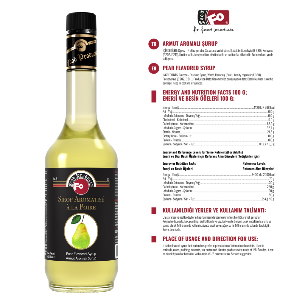 Armut Aromalı Kokteyl Şurubu 700ml