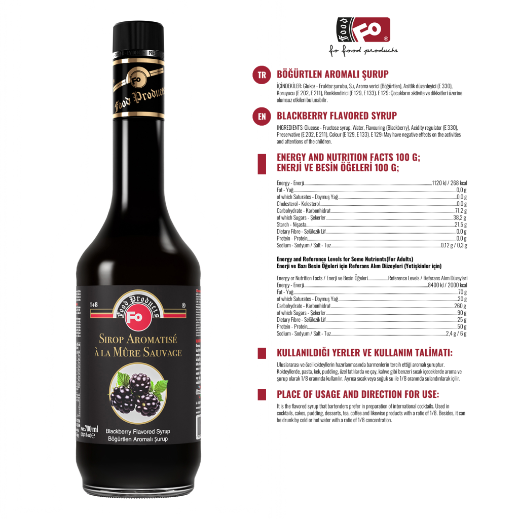 Böğürtlen Aromalı Kokteyl Şurubu 700ml