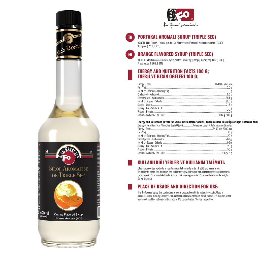Kullanım Alanları: Alkollü ve alkolsüz kokteyllerde, kremalarda, krem, şantilerde, keklerde, pastalarda, yenilebilir buzlarda, ice slush’larda istenilen ölçüde pratik olarak kullanılır.