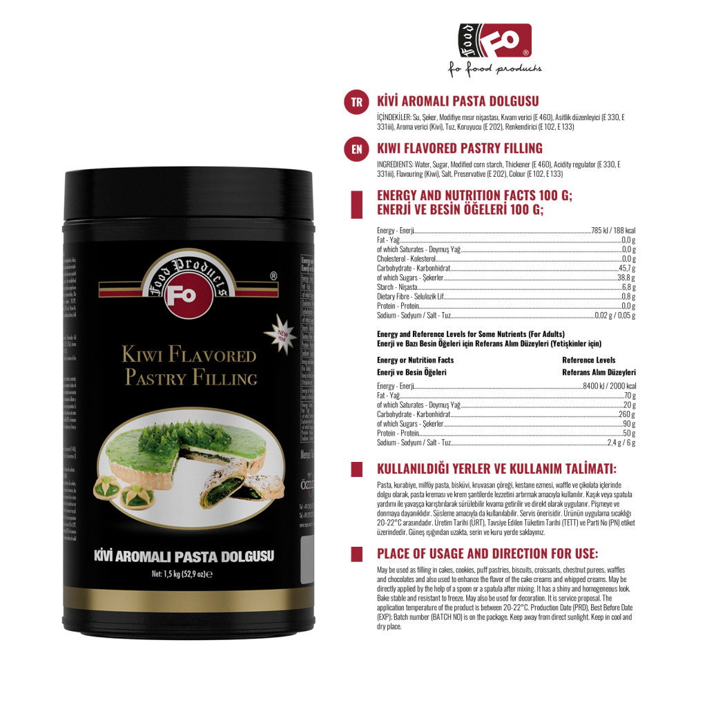 Ürün Özellikleri: Kuruma, çatlama ve matlaşma yapmaz. Parlak bir görünüme sahiptir. Kullanılabilir kıvama gelmesi kolaydır ve homojenliği bozulmaz. Bisküvi, kurabiye gibi yüksek sıcaklılara maruz kalan ürünlerde dolgu, özelliğini korumaktadır. Dışarıya sızma veya hamurun içinde emilme olmamaktadır. Serin ve kuru yerde muhafaza edilmelidir.